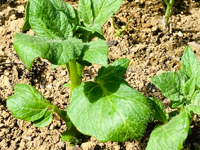 冷蔵庫の中で芽が出たジャガイモは、1週間で発芽して、今は30センチほどの丈になっているので、収穫が楽しみです。