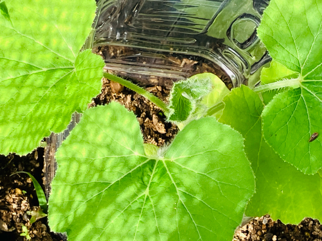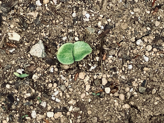 種から育てるには比較的大きめの種が植えやすかったので、カボチャの種を植えてみました。5個植えてみましたが、いっこうに発芽せず諦めていたら1ヶ月後になんと1つだけ双葉が出ていました。