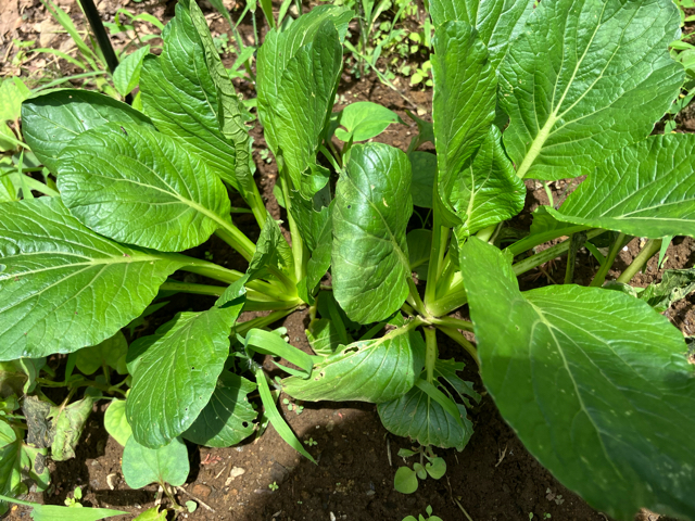 6月27日の小松菜です。買った時より丈は低くチンゲン菜くらいですが、6月19日時点で収穫してもよかったと思います。