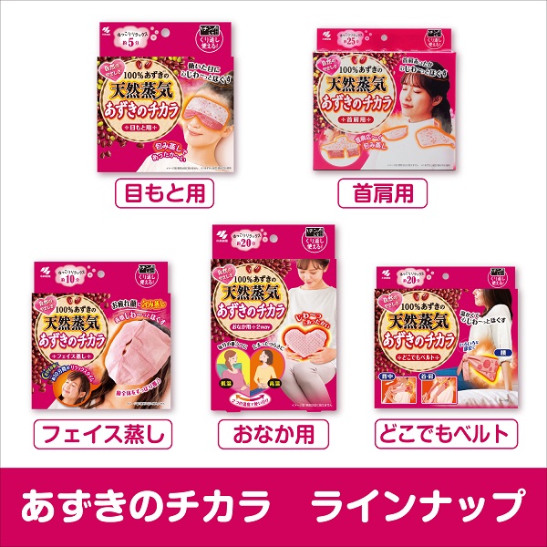 あずきの蒸気で体の気になる部分を温めるのが小林製薬の「あずきのチカラ」。