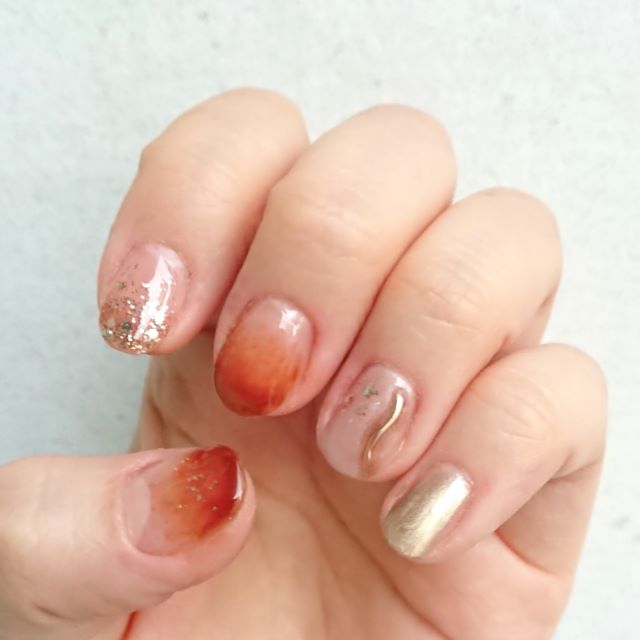 グラデーションの類いはマニキュアよりジェルが得意とするところです。特に今回使用のブラウンはシアータイプなので比較的失敗しにくいです。